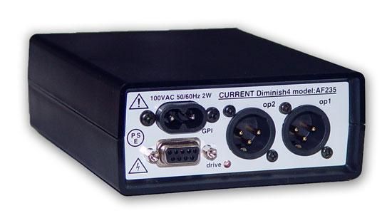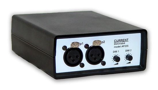 AF235はモニターライン等でリモートコマンドによってDIMをかけることが出来るインターフェスです。入出力はXLRコネクタですので様々な環境での応用が可能です。
